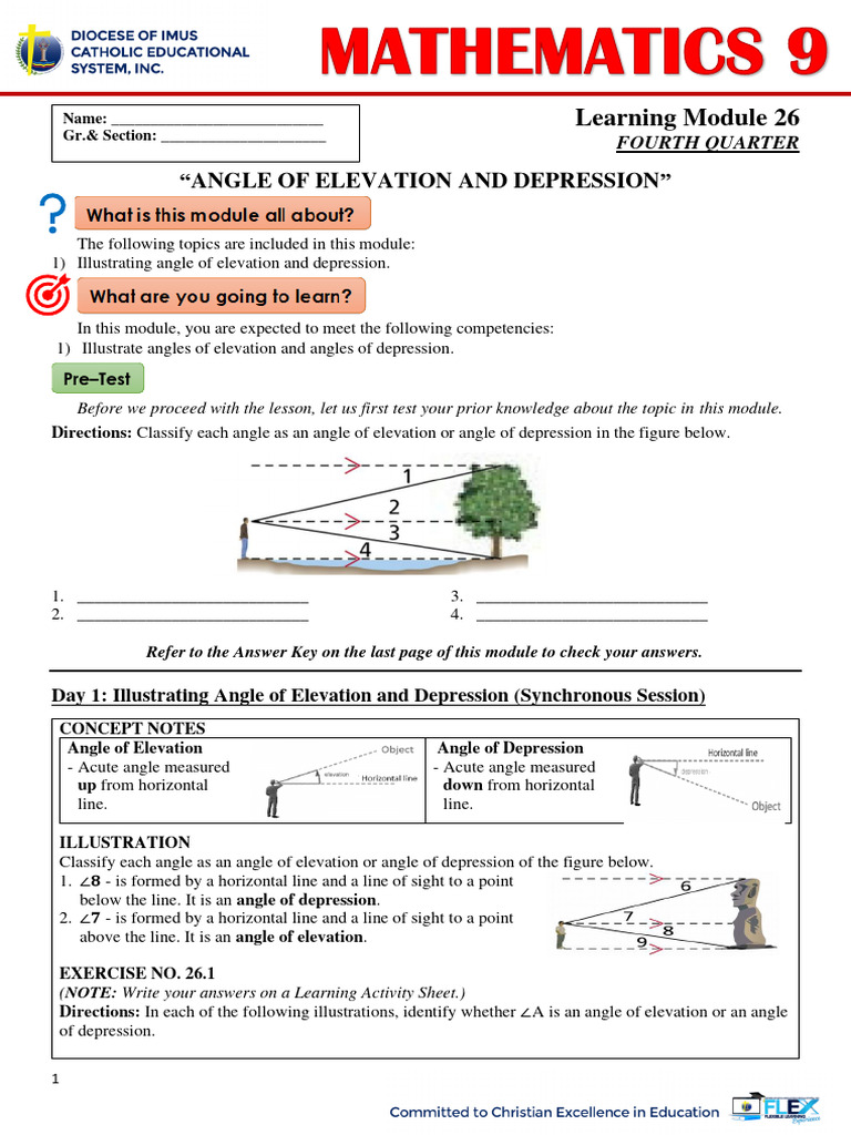 Day 1: Illustrating Angle of Elevation and Depression (Synchronous Session)