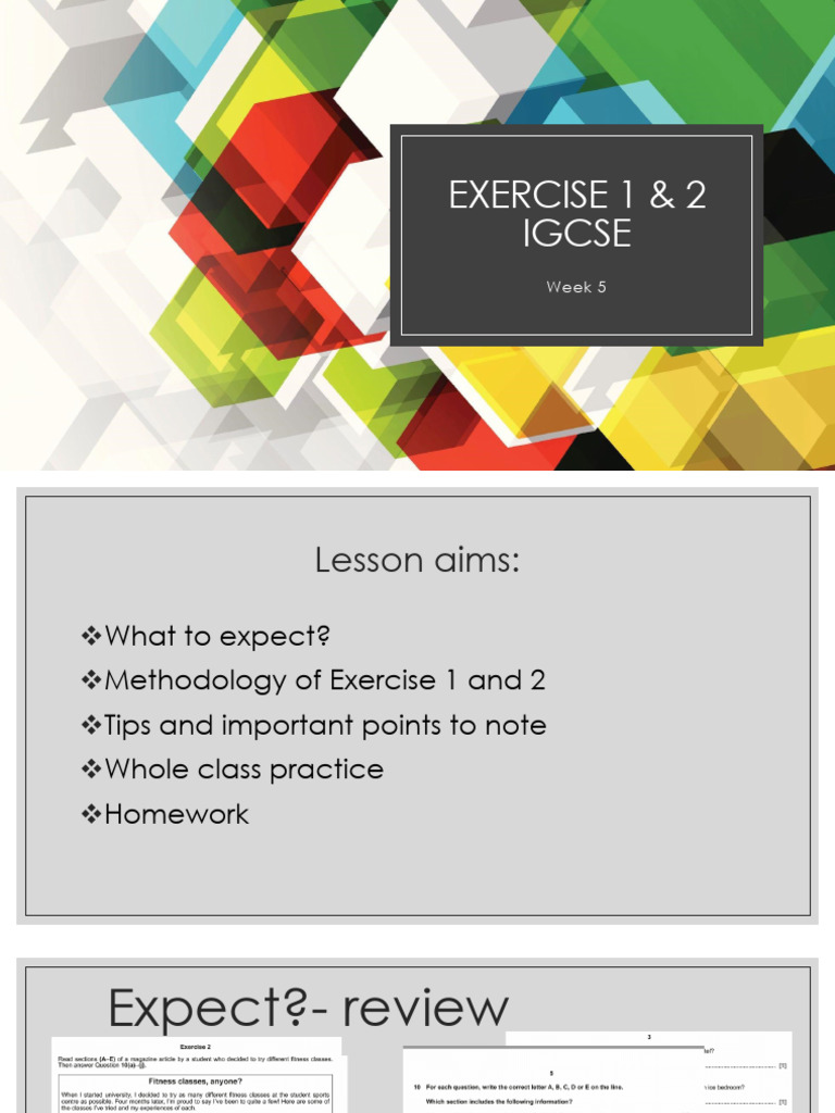 ◦Ex 1, 2, and 3 are all reading assessment objectives