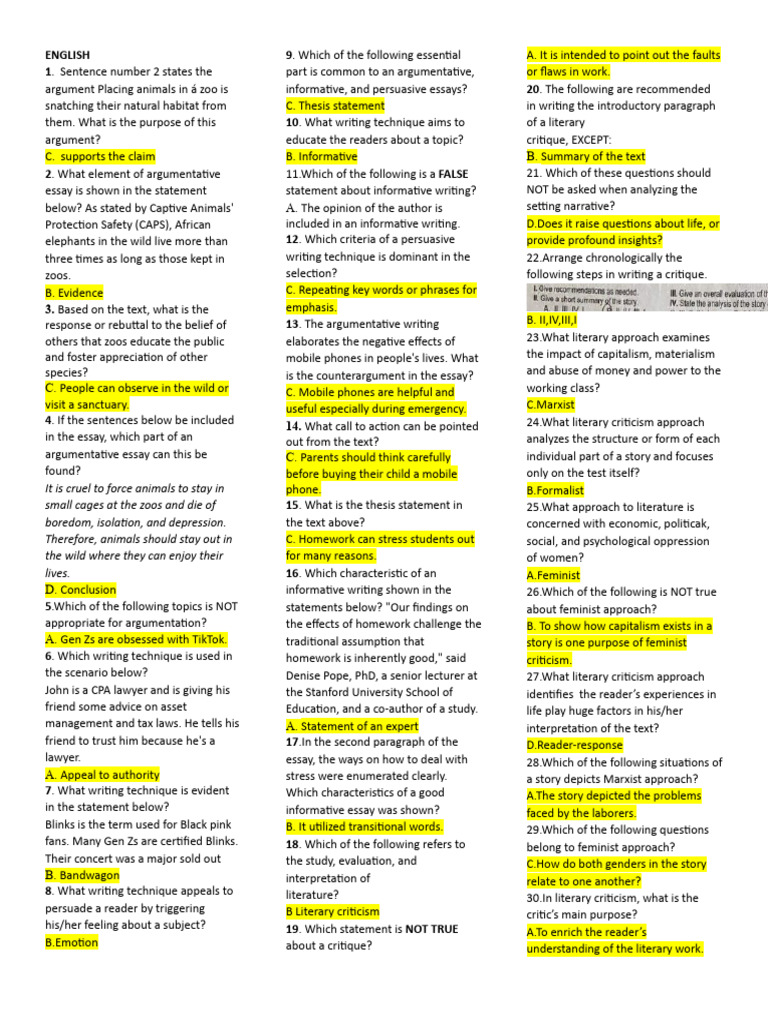 4. If the sentences below be included 14. What call to action can be pointed 24.What literary criticism approach