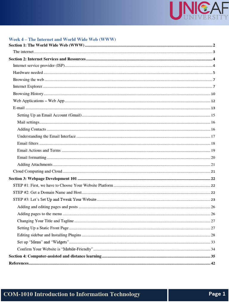 course. Wherever an e-Book is provided for a module, e-Book Support (ebooks@unicaf.org) will send you a