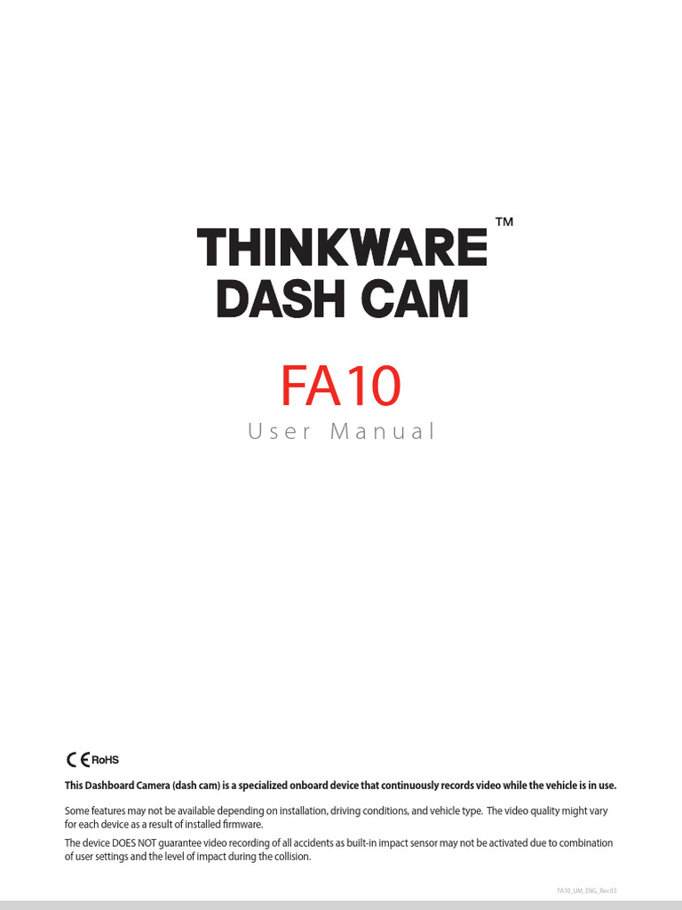 THINKWARE reserves the right to change or modify the product and the content of this manual at any time