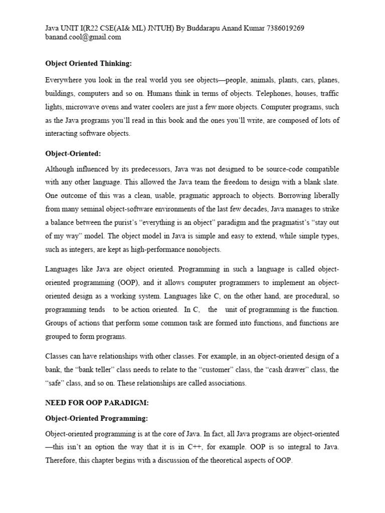 Java UNIT I(R22 CSE(AI& ML) JNTUH) By Buddarapu Anand Kumar 7386019269
