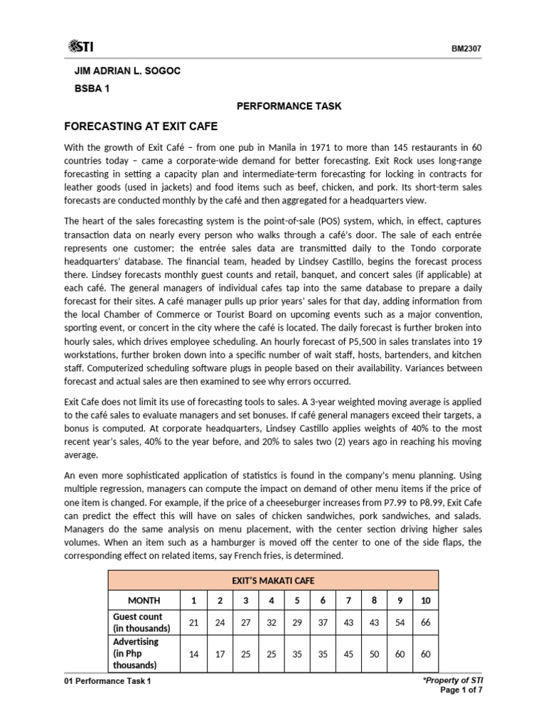 and pork. Its short-term sales forecasts are conducted each month by the cafe and then aggregated for a