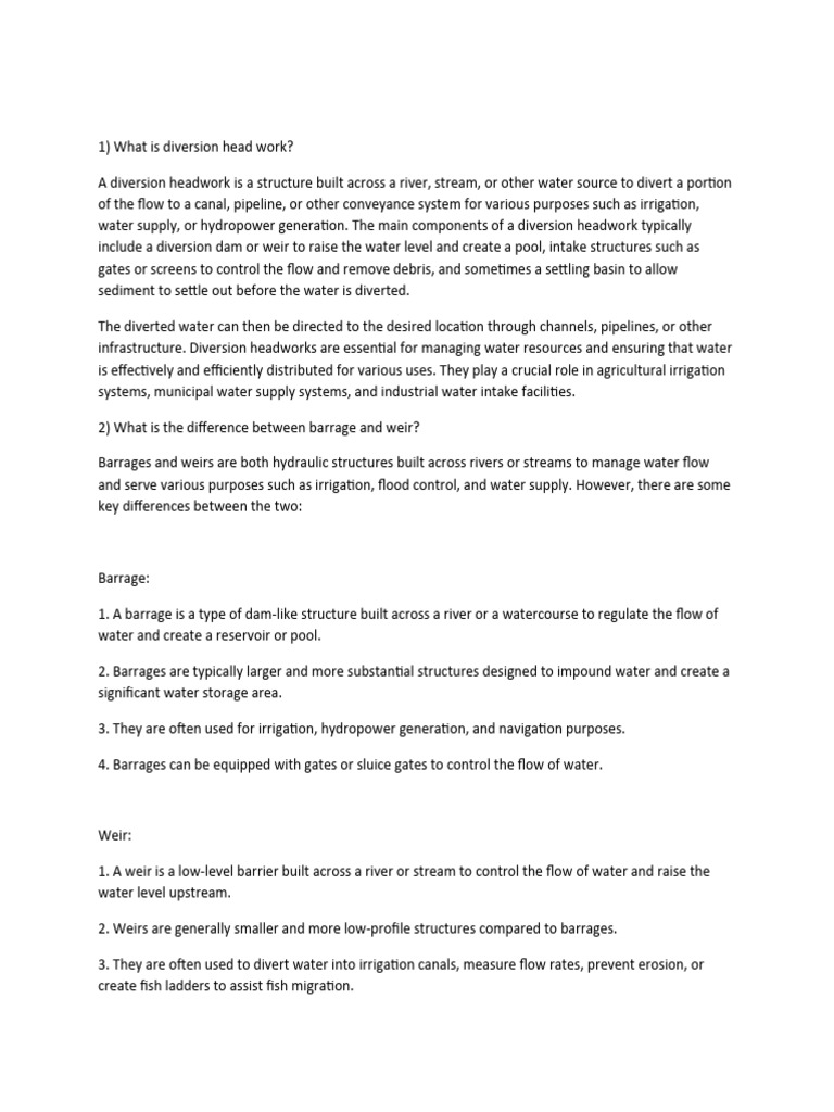 water supply, or hydropower generation. The main components of a diversion headwork typically