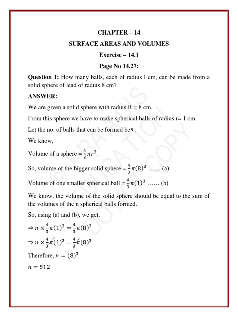 Hence, the no. of balls of radius r =1 that can be formed out of solid sphere