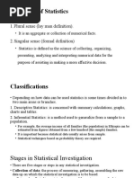 b) Statistics in its singular sense: Statistics as a branch of scientific method deals with the planning and