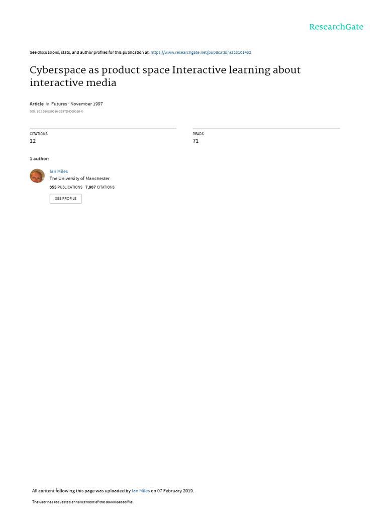 All content following this page was uploaded by Ian Miles on 07 February 2019.