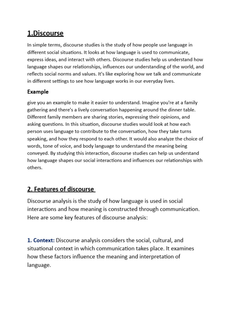 2. Spoken Discourse: Spoken discourse focuses on the analysis of language use in