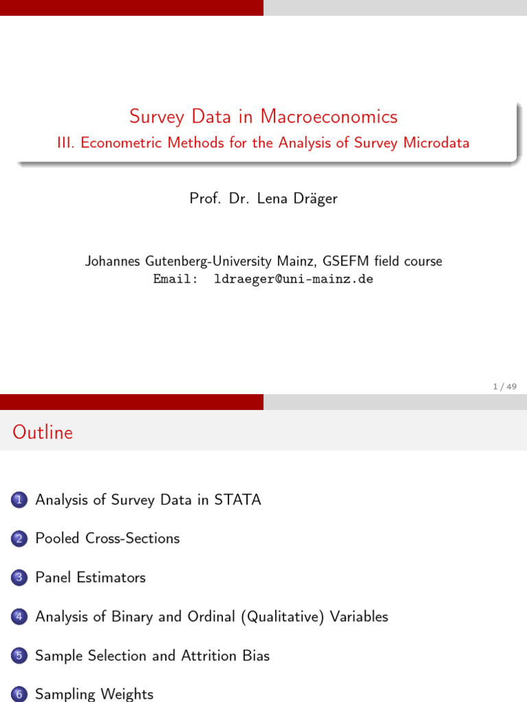 III. Econometric Methods for the Analysis of Survey Microdata