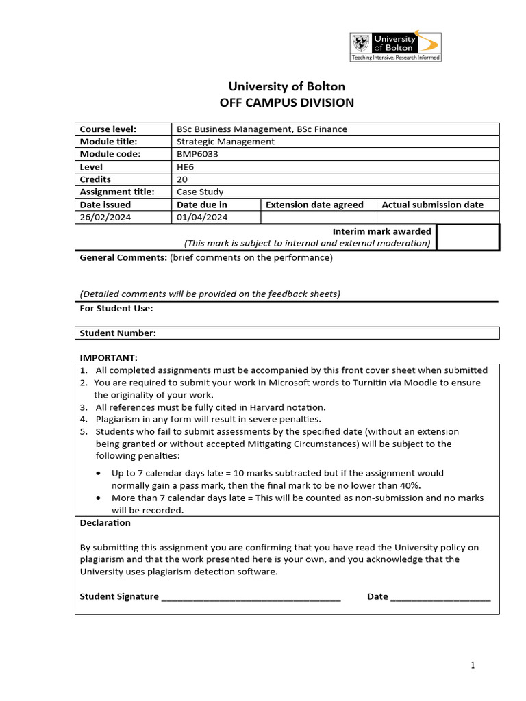 1. All completed assignments must be accompanied by this front cover sheet when submitted