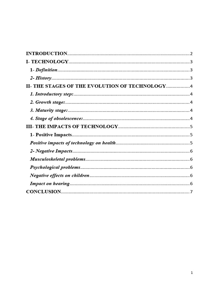 III- THE IMPACTS OF TECHNOLOGY.......................................................5