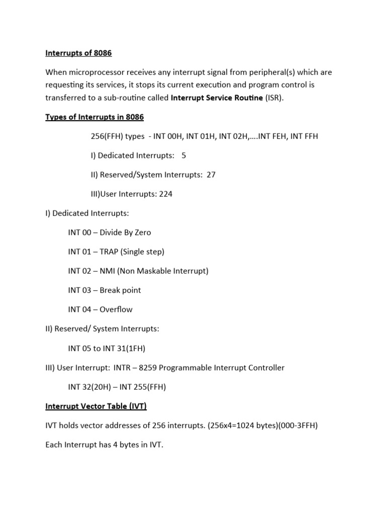 Interrupts of 8086