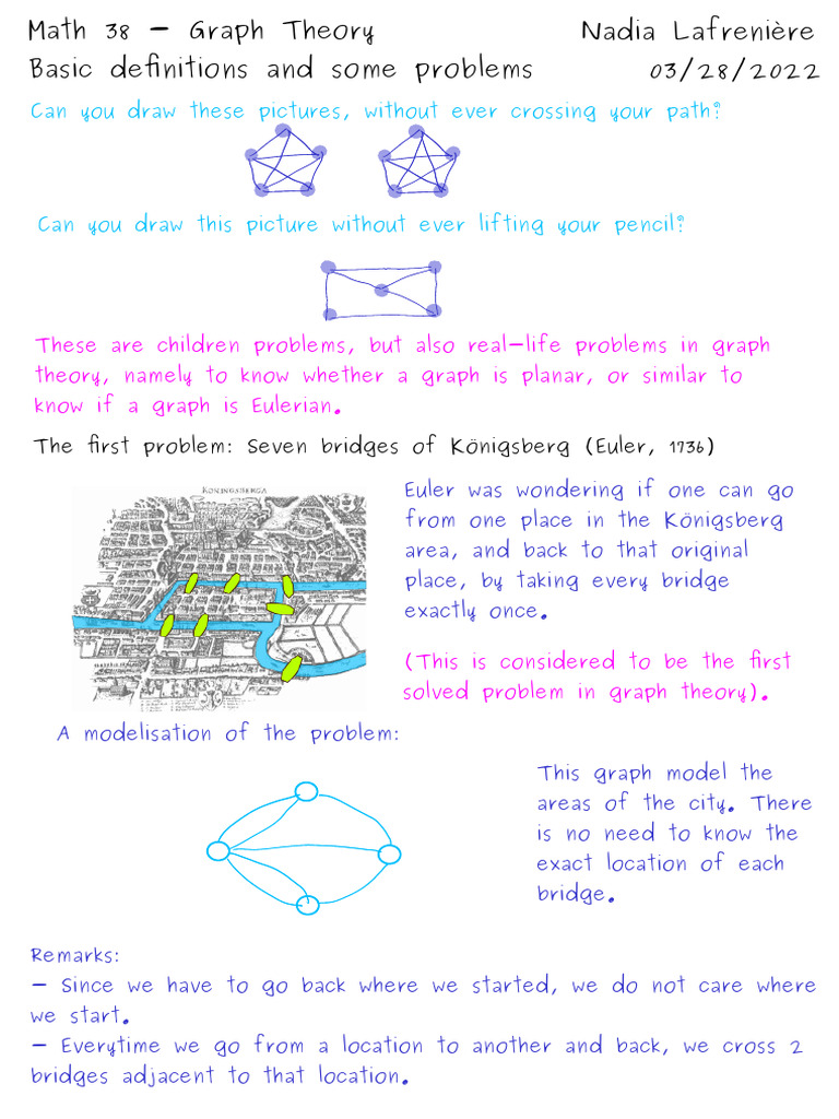The first problem: Seven bridges of Königsberg (Euler, 1736)