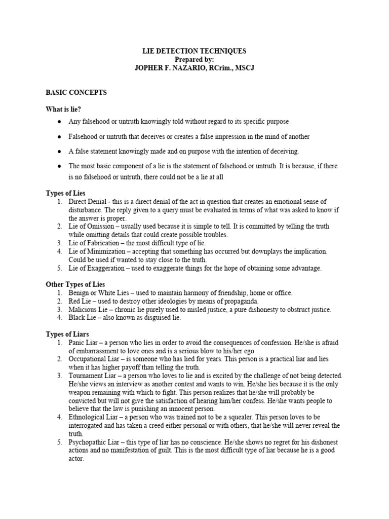 Notes Lie Detection Techniques