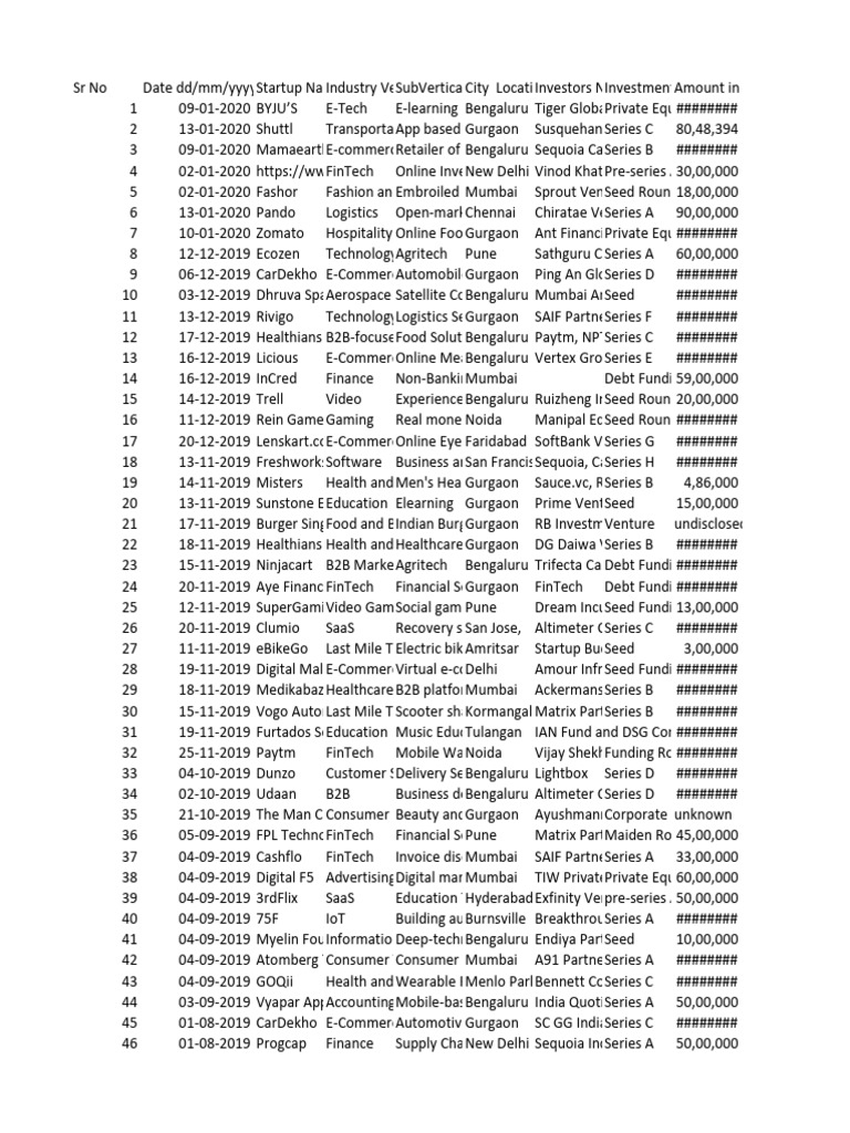 Sr No Date dd/mm/yyyyStartup Name Industry Vertical