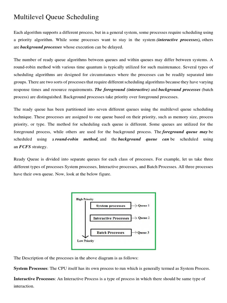 1. You can use multilevel queue scheduling to apply different scheduling methods to distinct processes.