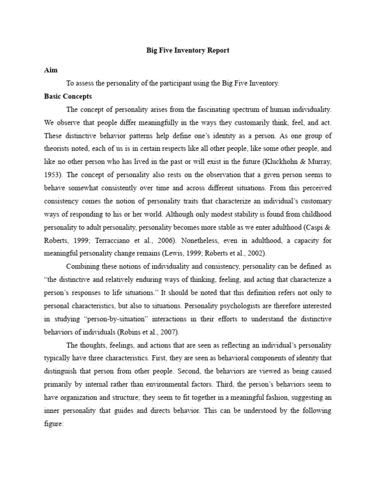 materials required was only The “Big Five” Factor Inventory. The answers were filled in