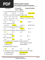 Time: 01:30 MATHEMATICS-1ST YEAR Max: Marks: 100
