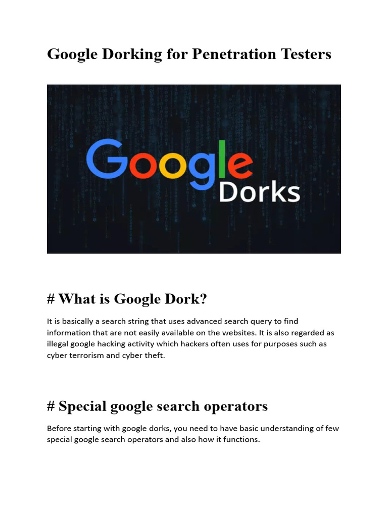 penetration testers, using these dorks for unauthorized access or exploitation is