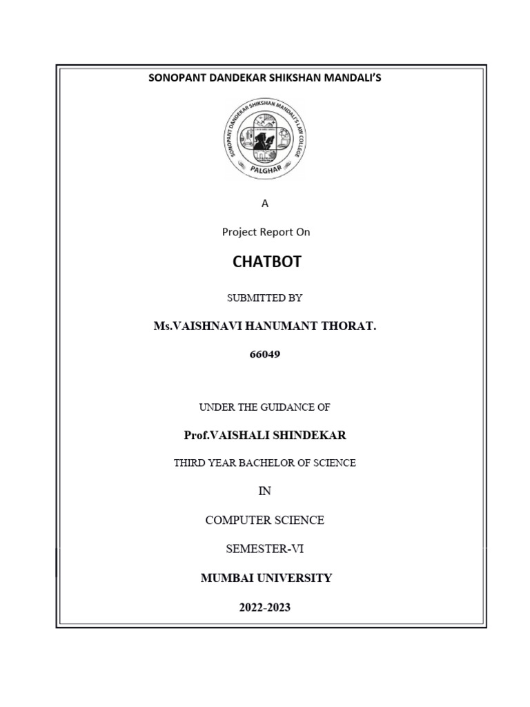 CHATBOT under the guidance of Faculty Member Prof. VAISHALI
