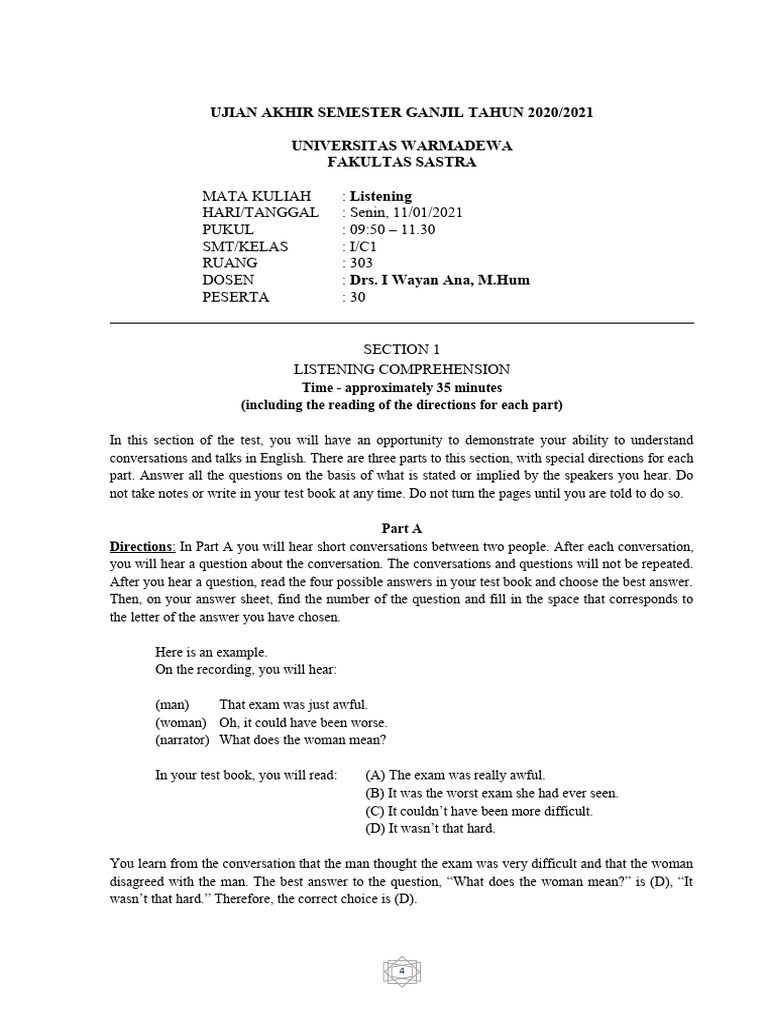 conversations and talks in English. There are three parts to this section, with special directions for each