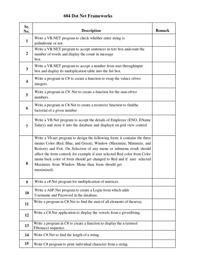 604 Dot Net Frameworks