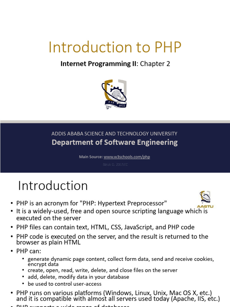 • A PHP file normally contains HTML tags, and some PHP scripting code.