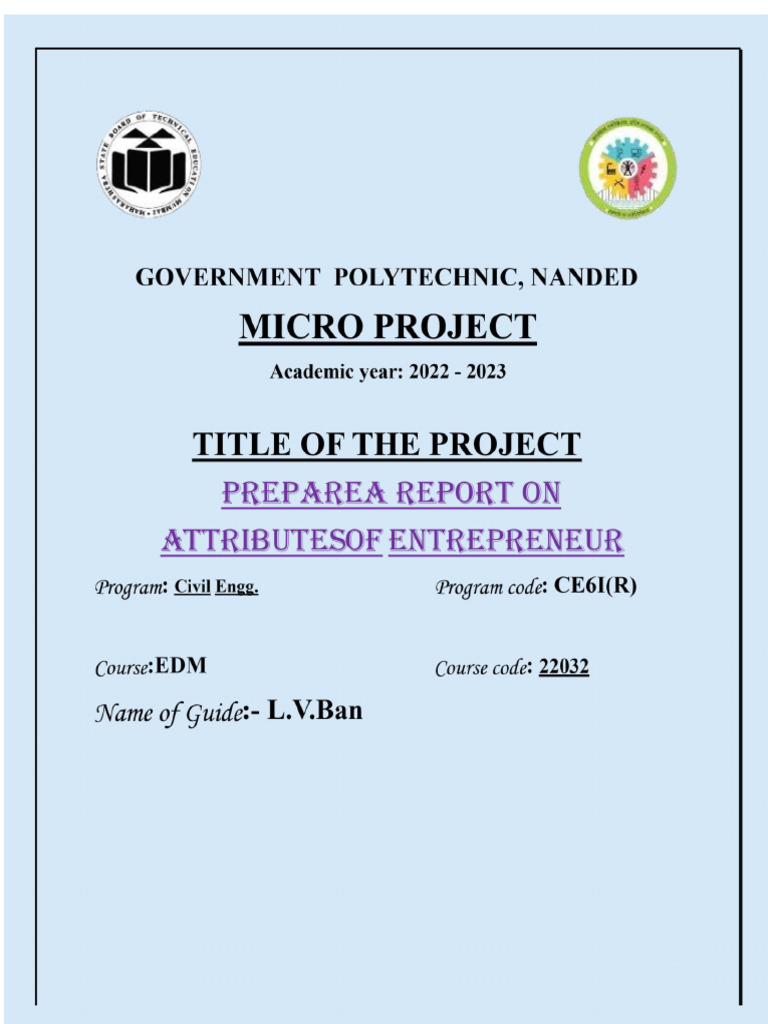 of Micro-Project : “prepare a report on attributes of entrepreneur".