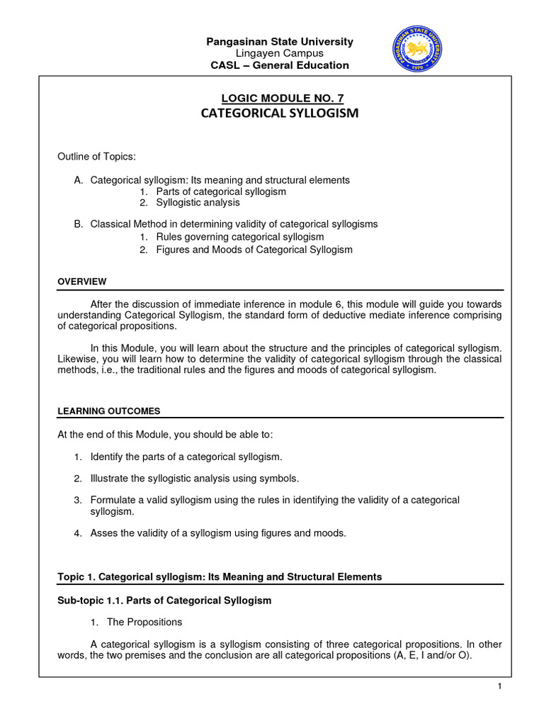 In this Module, you will learn about the structure and the principles of categorical syllogism.