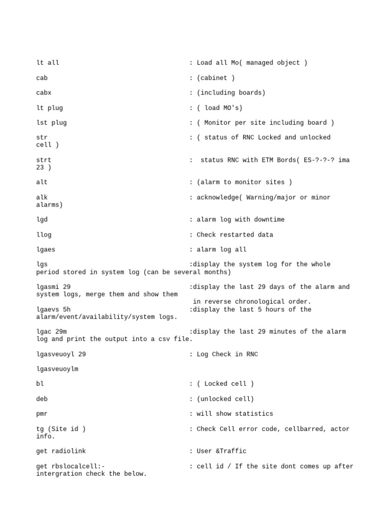 lpr utrancell=(Site Num) utranrelation : To find all relation Utrancell & GSM