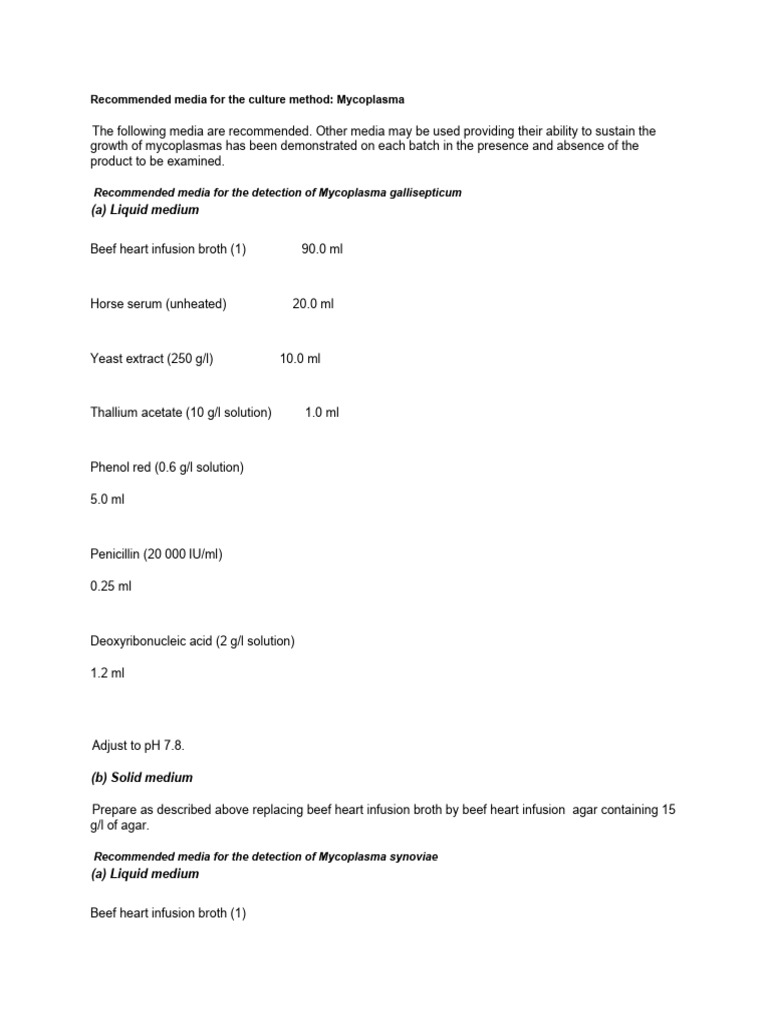 The following media are recommended. Other media may be used providing their ability to sustain the