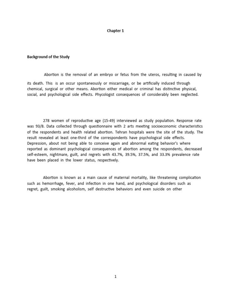 It is the purpose of the study to determine the effects of abortion on womens health.