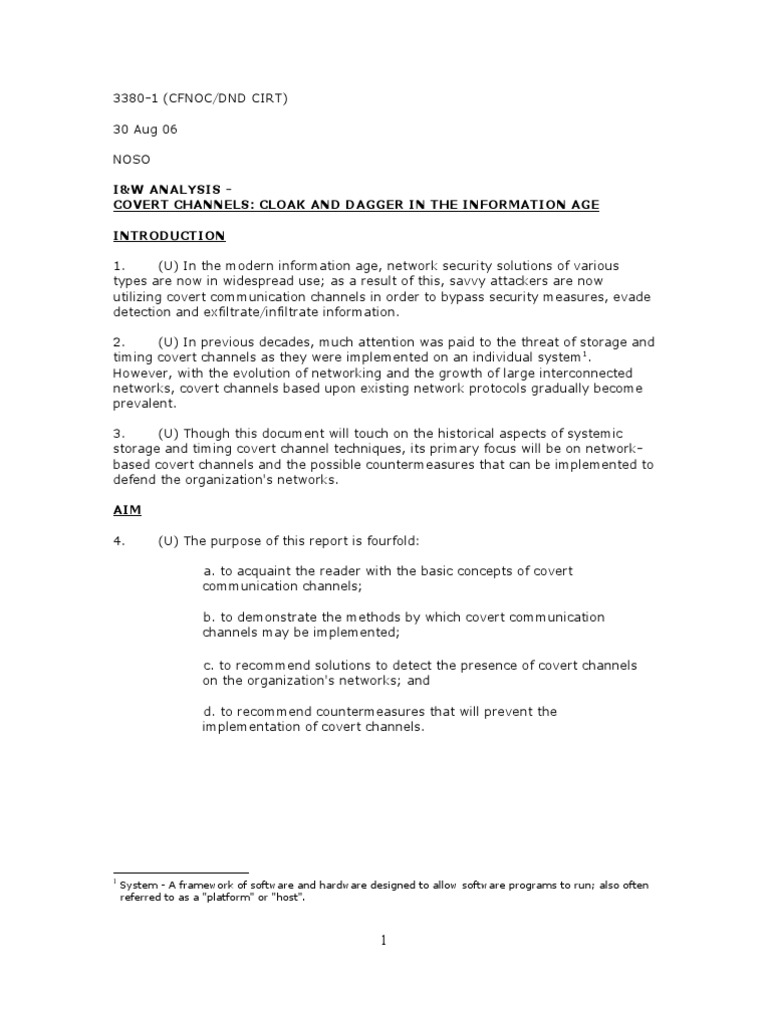 15. (U) In their report regarding covert channels, Marc Smeets and Matthijs Koot
