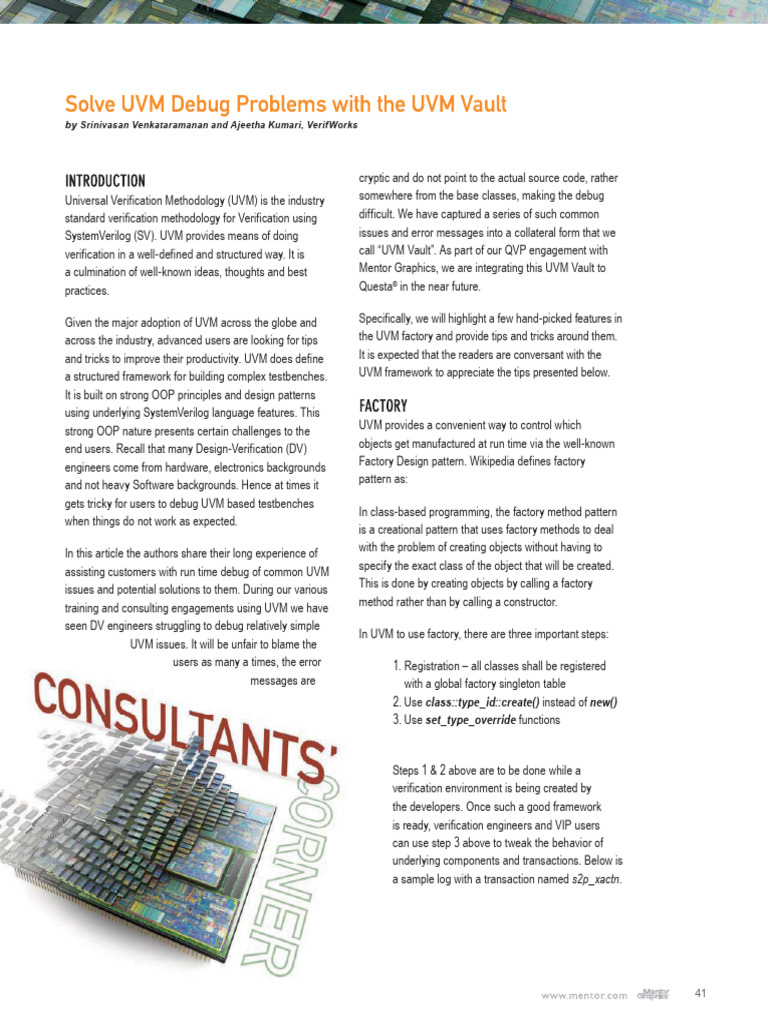 a culmination of well-known ideas, thoughts and best Mentor Graphics, we are integrating this UVM Vault to