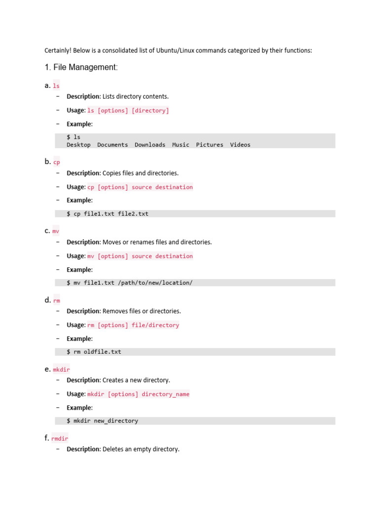 Below is a consolidated list of Ubuntu/Linux commands categorized by their functions: