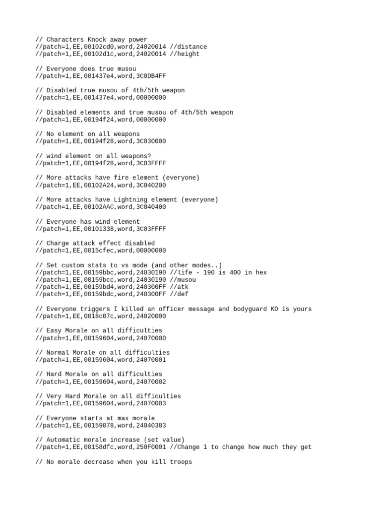 //patch=1,EE,00159bcc,word,24030190 //musou