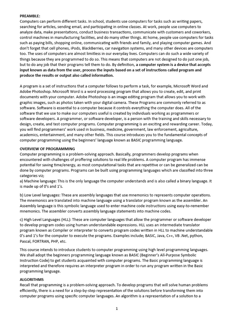 design, create, and test computer programs. Computer programming is an exciting and rewarding career. Today,