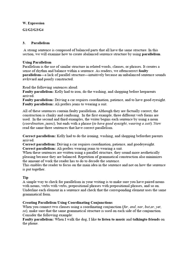 section, we will examine how to create abalanced sentence structure by using parallelism.