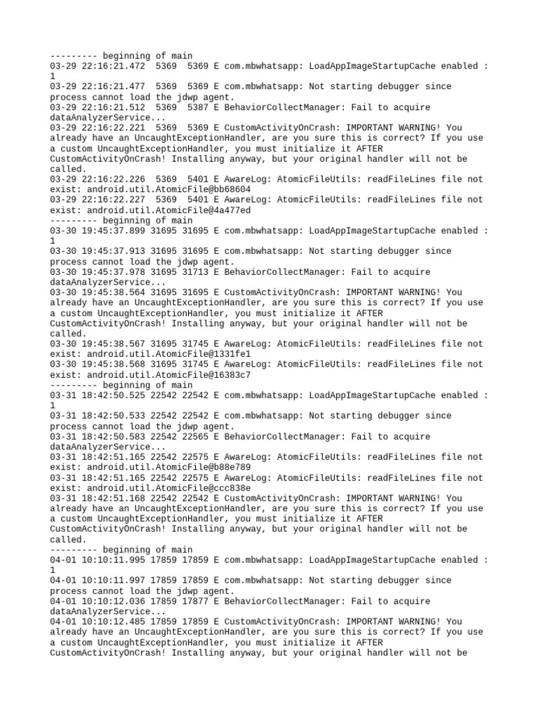 04-02 03:31:51.038 9920 9920 E com.mbwhatsapp: LoadAppImageStartupCache enabled :