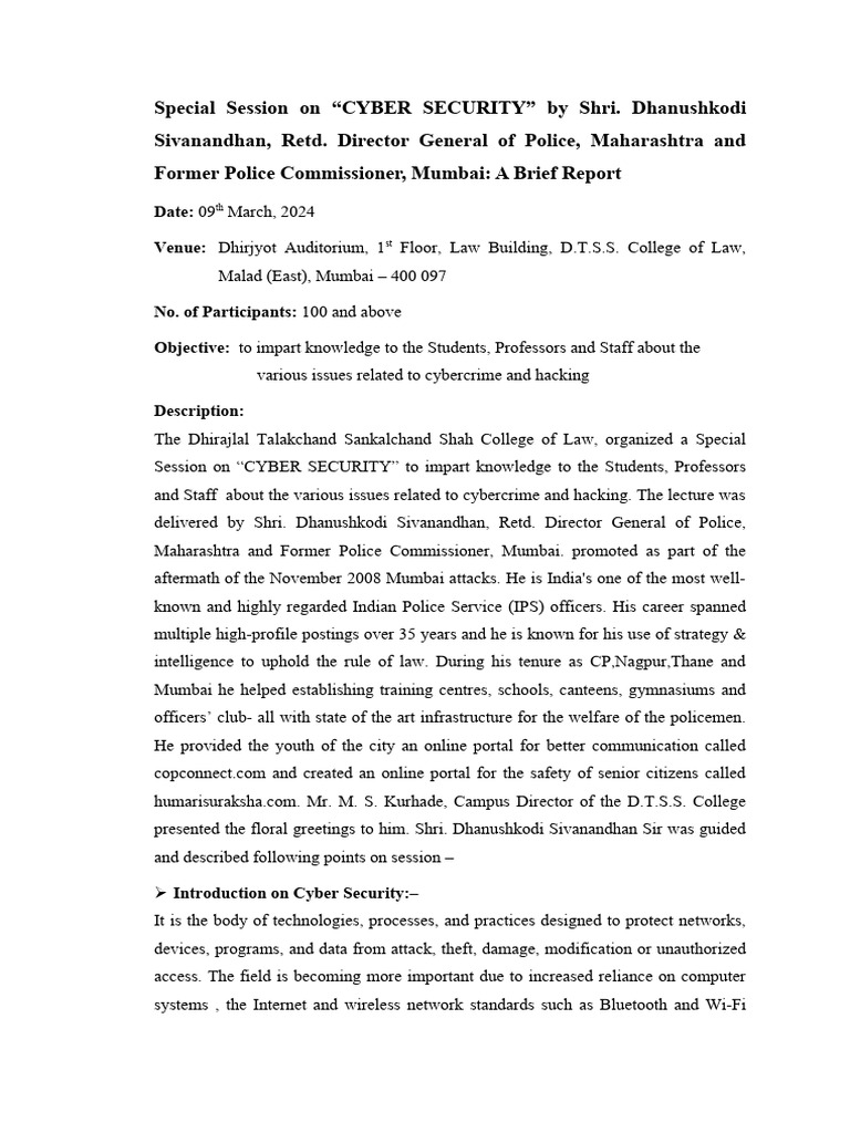 and Staff about the various issues related to cybercrime and hacking. The lecture was