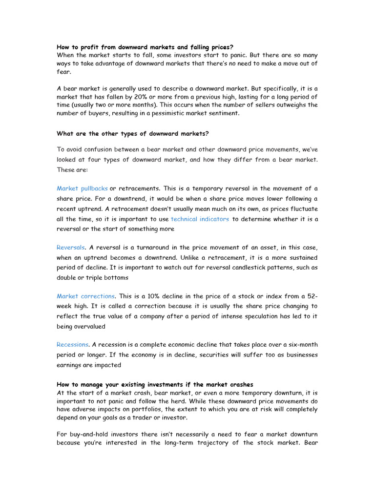 There are multiple ways to make profit in falling markets: short-selling, dealing short