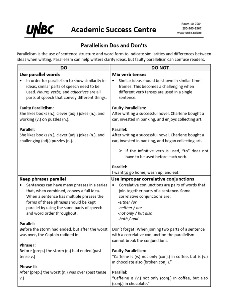 ideas when writing. Parallelism can help writers clarify ideas, but faulty parallelism can confuse readers.