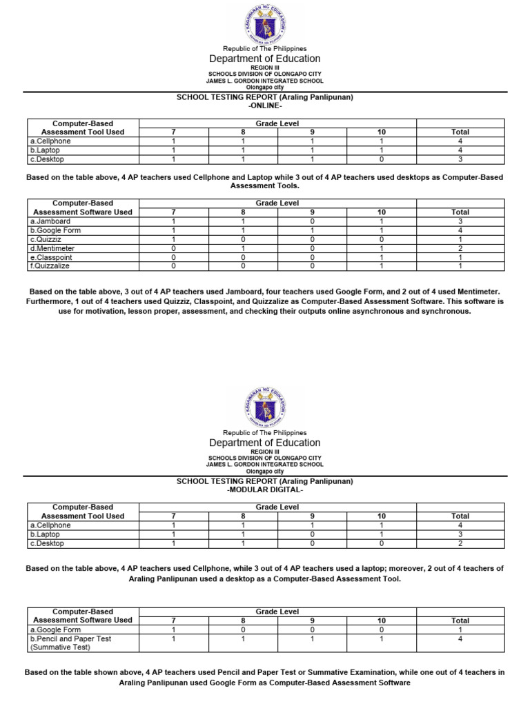 Araling Panlipunan used Google Form as Computer-Based Assessment Software