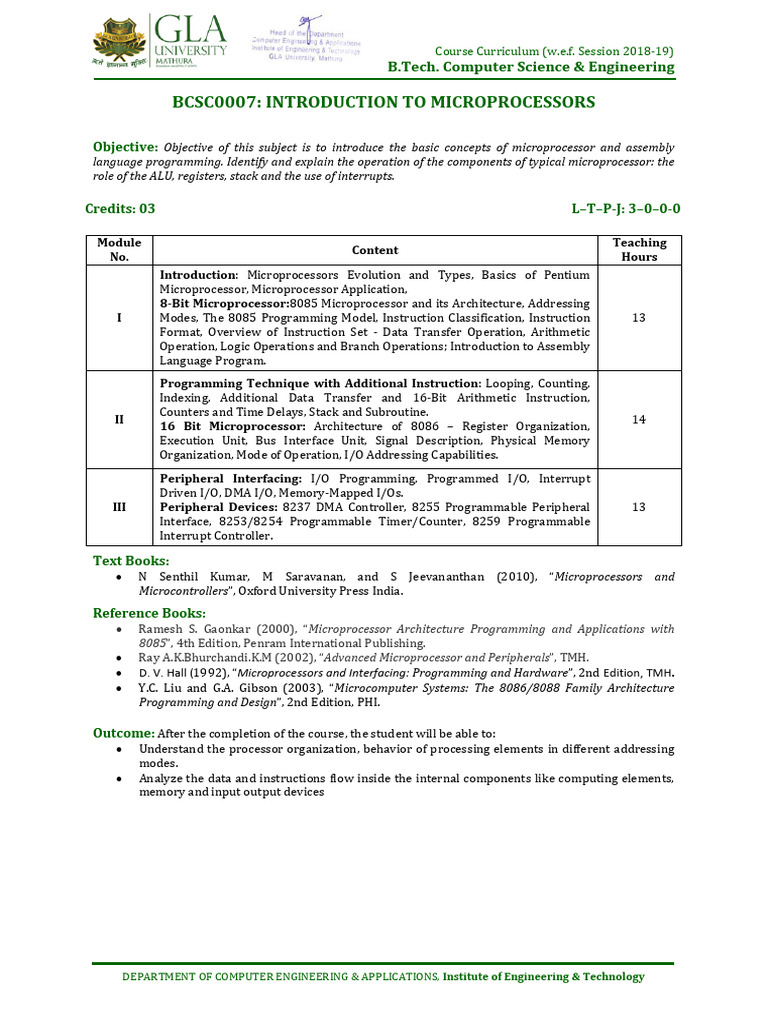 BCSC0007: INTRODUCTION TO MICROPROCESSORS