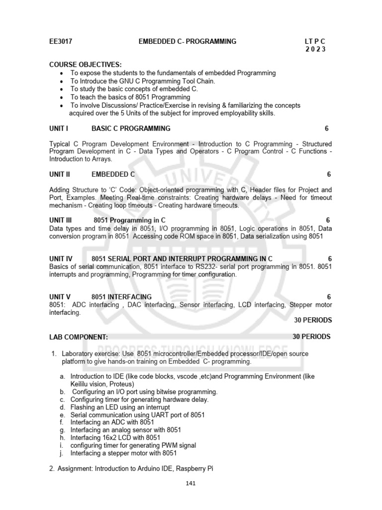 EE3017 EMBEDDED C- PROGRAMMING LT P C