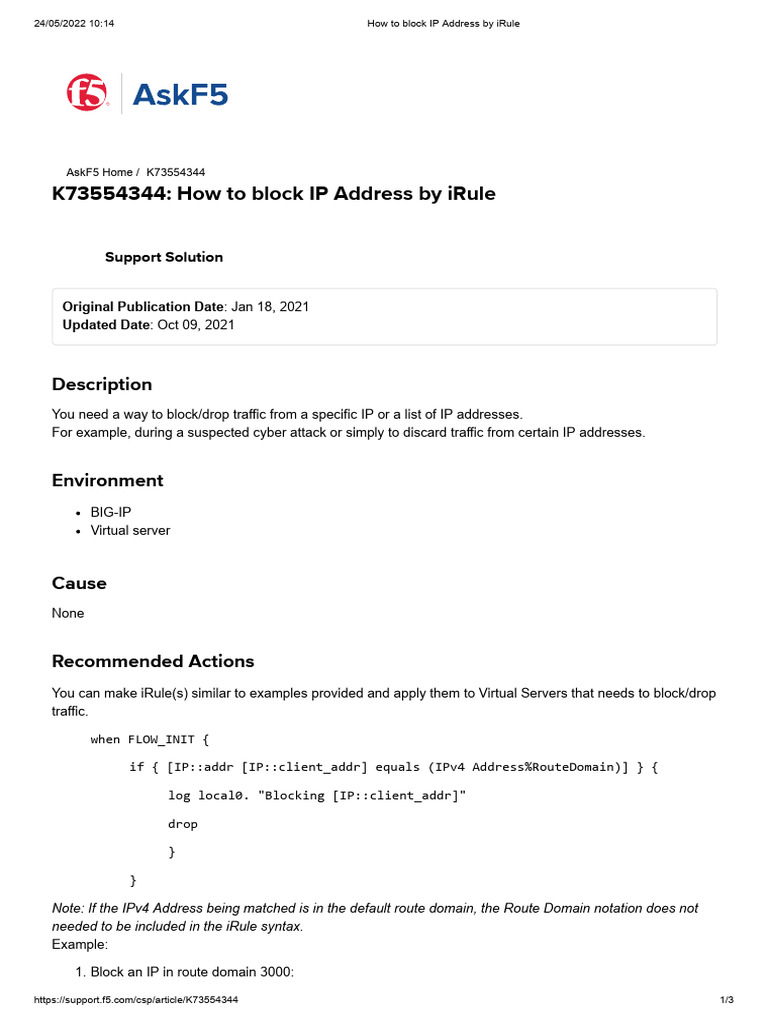 F5 Support engineers who work directly with customers to resolve issues create this content. Support Solution