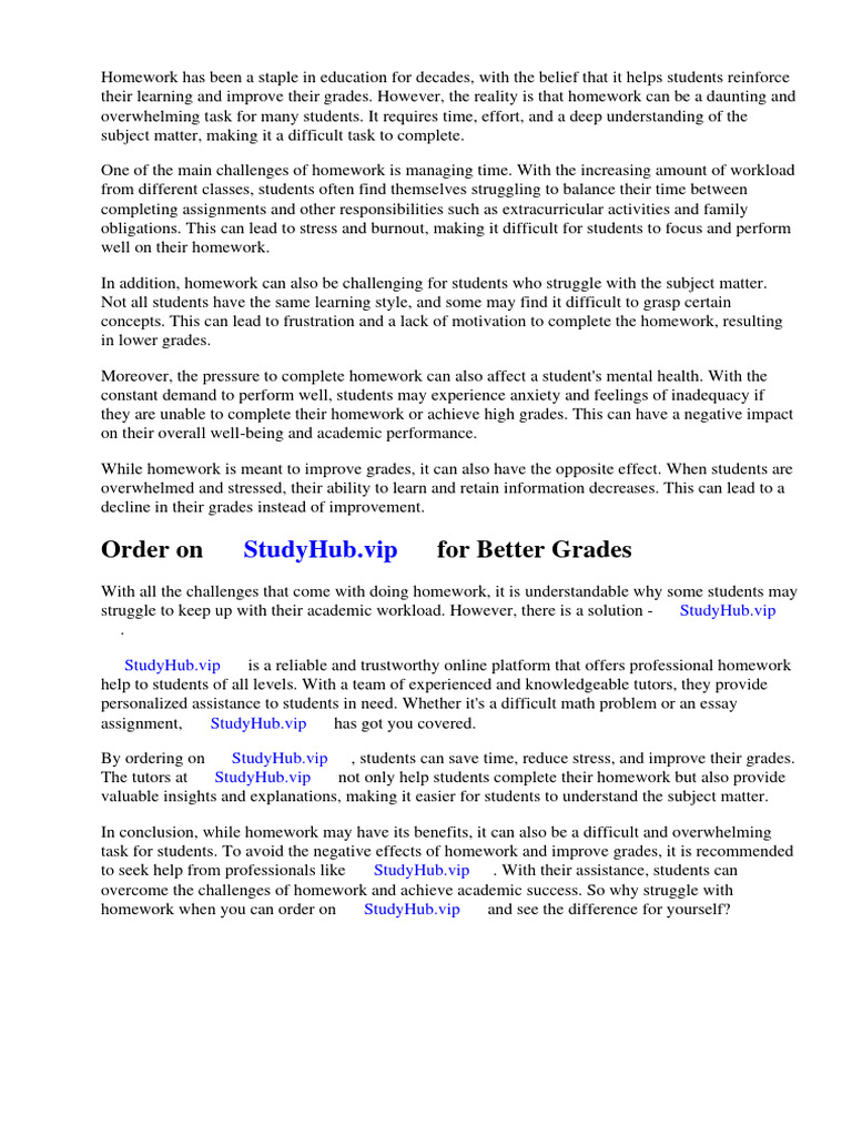 their learning and improve their grades. However, the reality is that homework can be a daunting and