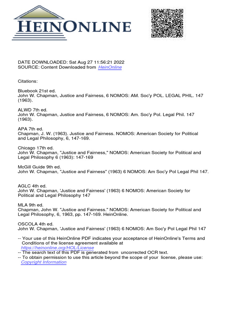 Chapman, John W. "Justice and Fairness." NOMOS: American Society for Political and