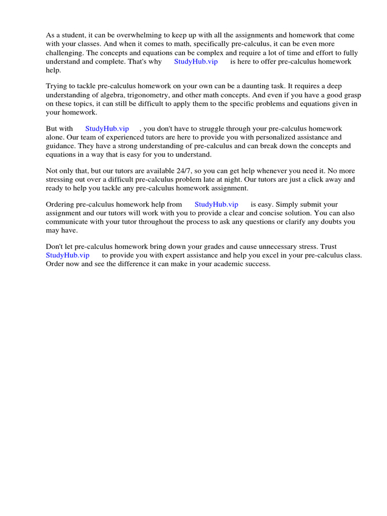 Ordering pre-calculus homework help from ⇒ StudyHub.vip ⇔ is easy. Simply submit your