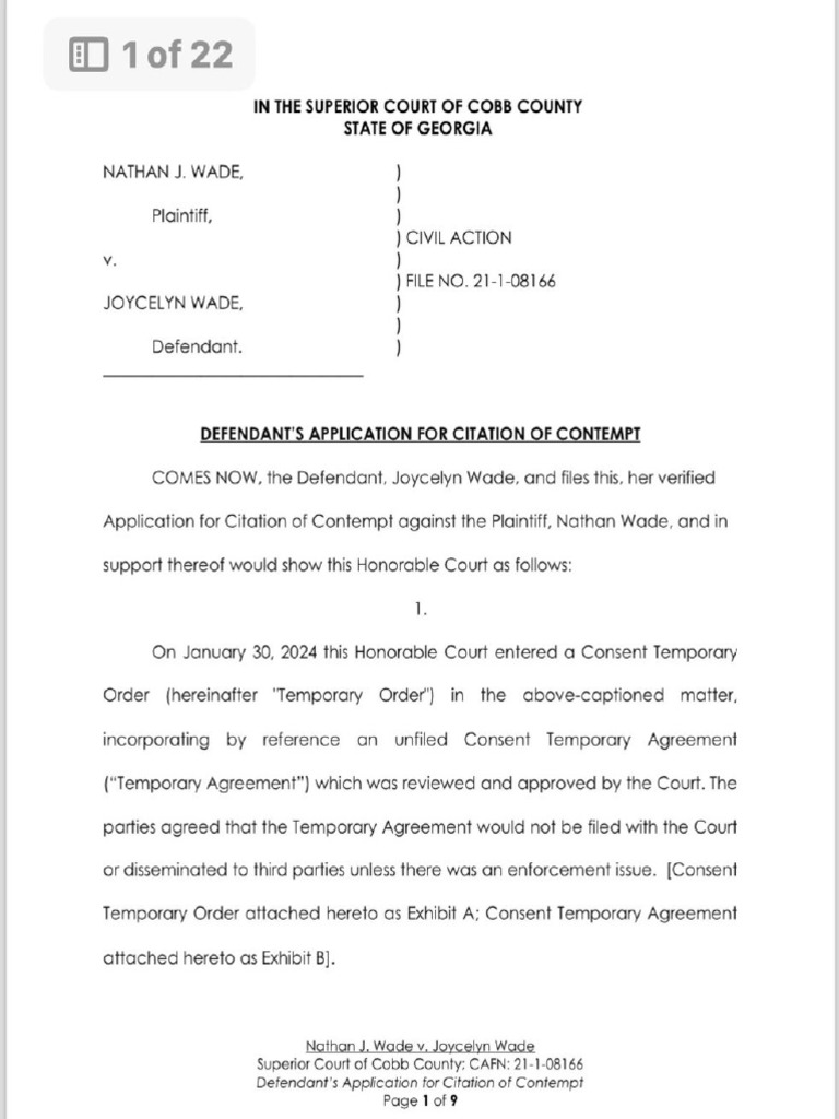 Application for Citation of Contempt against the Plaintiff, Nathan Wade, and in